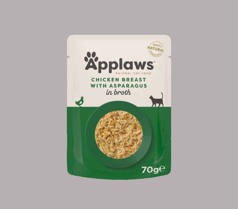 Applaws Chicken Breast with Asparagus in Broth is a 100% natural complementary pet food for adult cats that contains nothing more than the ingredients listed.