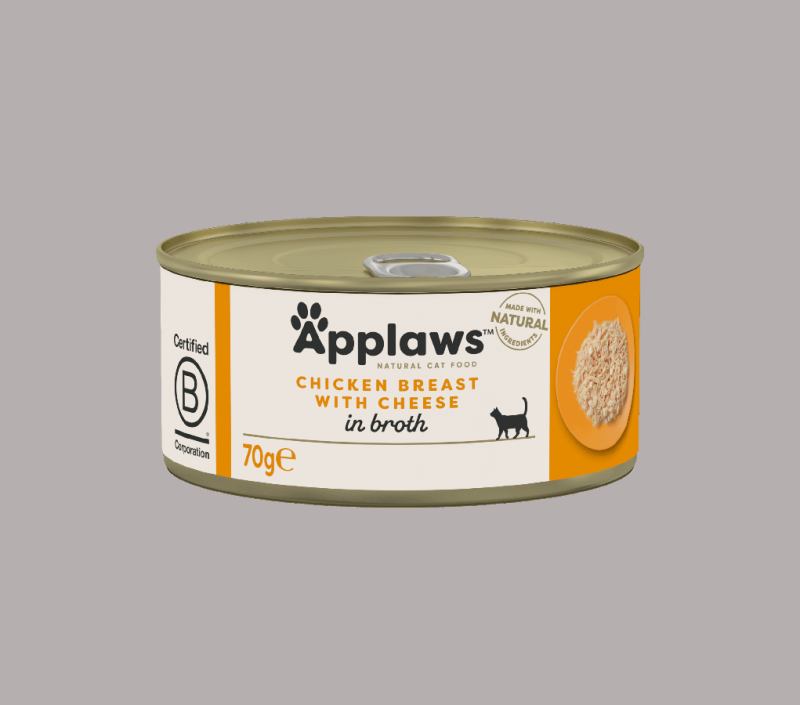 Applaws Chicken Breast with Cheese in Broth is a complementary pet food for adult cats, made with natural ingredients.