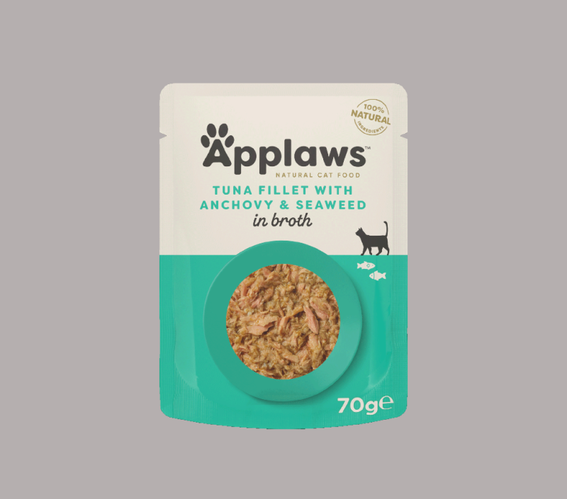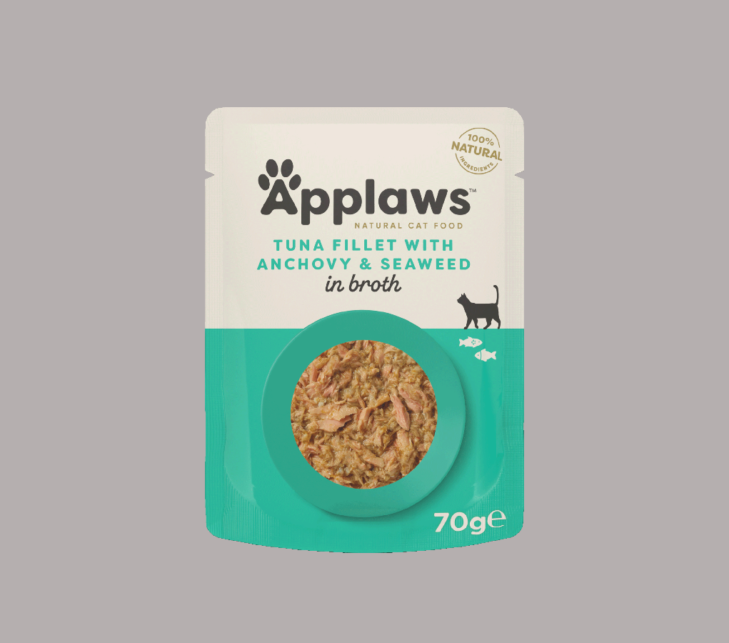 Applaws Tuna Fillet with Anchovy & Seaweed in Broth is a 100% natural complementary pet food for adult cats that contains nothing more than the ingredients listed.