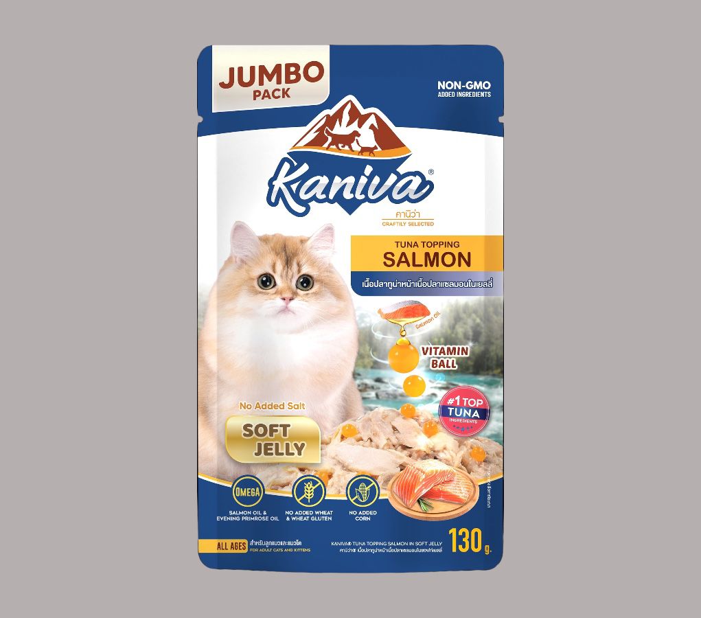 Kaniva Tuna Topping Salmon in Jelly Pouch Jumbo Pack is the perfect choice for owners who want to give their cats the best, whether it’s taste, nutrition, or safety. We pay attention to every detail to ensure your cat is healthy and happy every day.