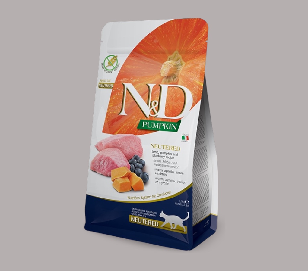 / N&D Cat Neutered – Lamb, pumpkin and blueberry recipe.1.5kg (Dry food)