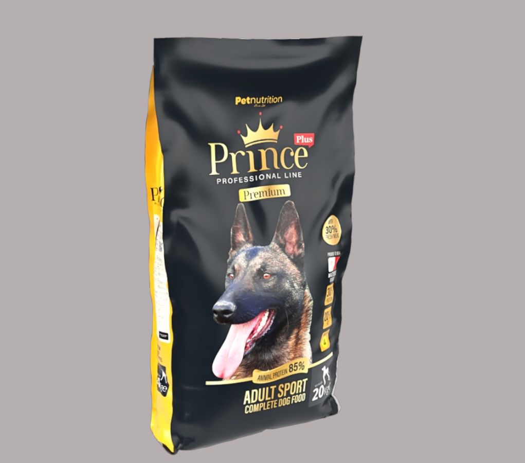 Prince Plus Premium – Adult Sport – High Protein for Active Adult Dogs is specifically designed to deliver optimal nutrition with 85% animal protein, supporting healthy intestines and promoting a shiny coat and healthy skin. This carefully balanced diet is crafted to meet the needs of active adult dogs, ensuring they receive the nutrients required for sustained energy, muscle development, and overall wellness.