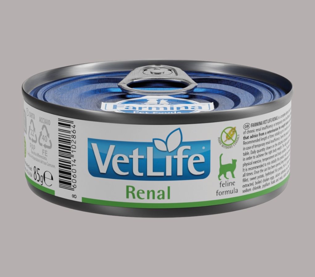 Farmina Vet Life Renal is a complete dietetic food for cats formulated to support the renal function in case of chronic or temporary renal insufficiency. This dietetic food contains low phosphorus concentrations and reduced protein content but of high quality. Instruction for use: it is recommended that a veterinarian’s opinion be sought before use and before extending the period of use. Serve the product as it is, at room temperature, following the daily quantity indicated in the table. Recommended period of use: initially use Farmina Vet Life Renal up to 6 months (2-4 weeks in case of temporary renal insufficiency). Always leave plenty of fresh water.